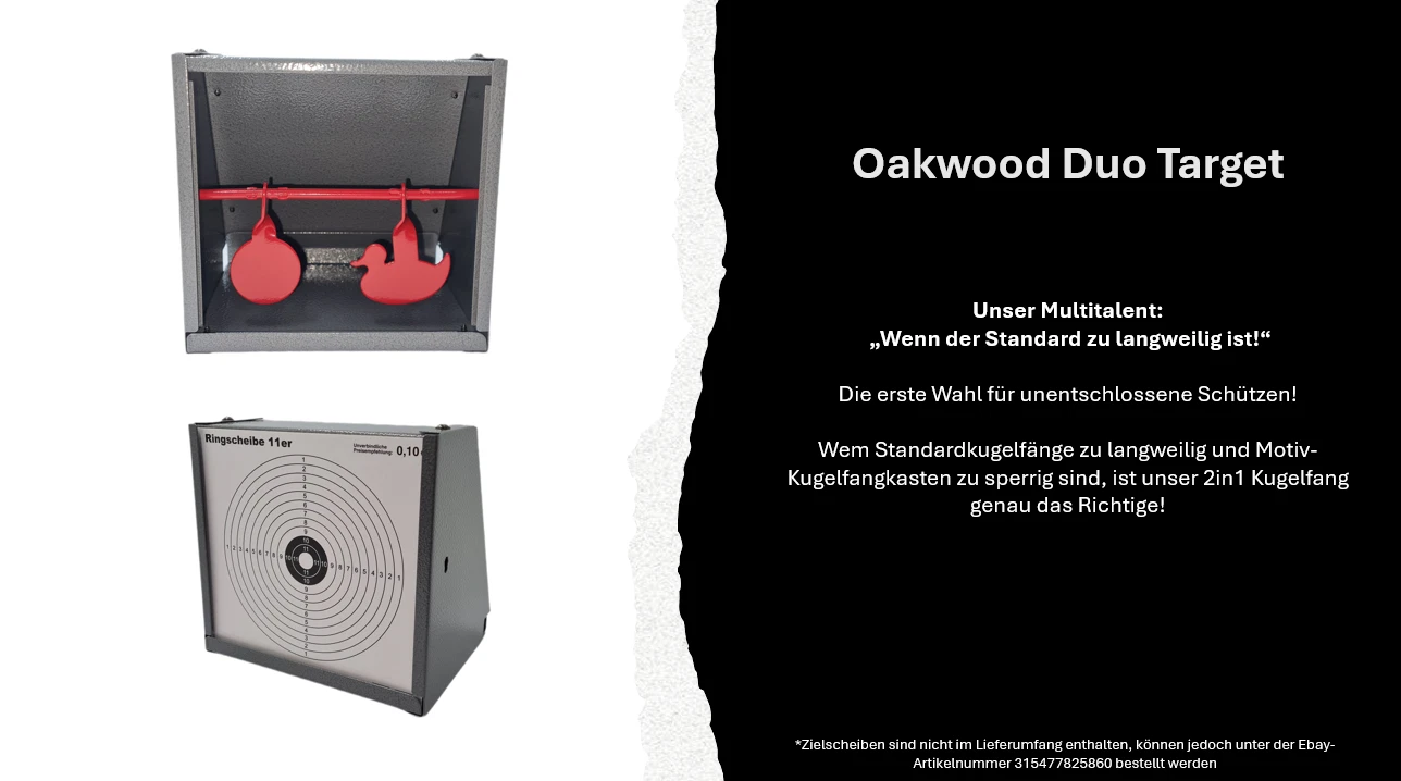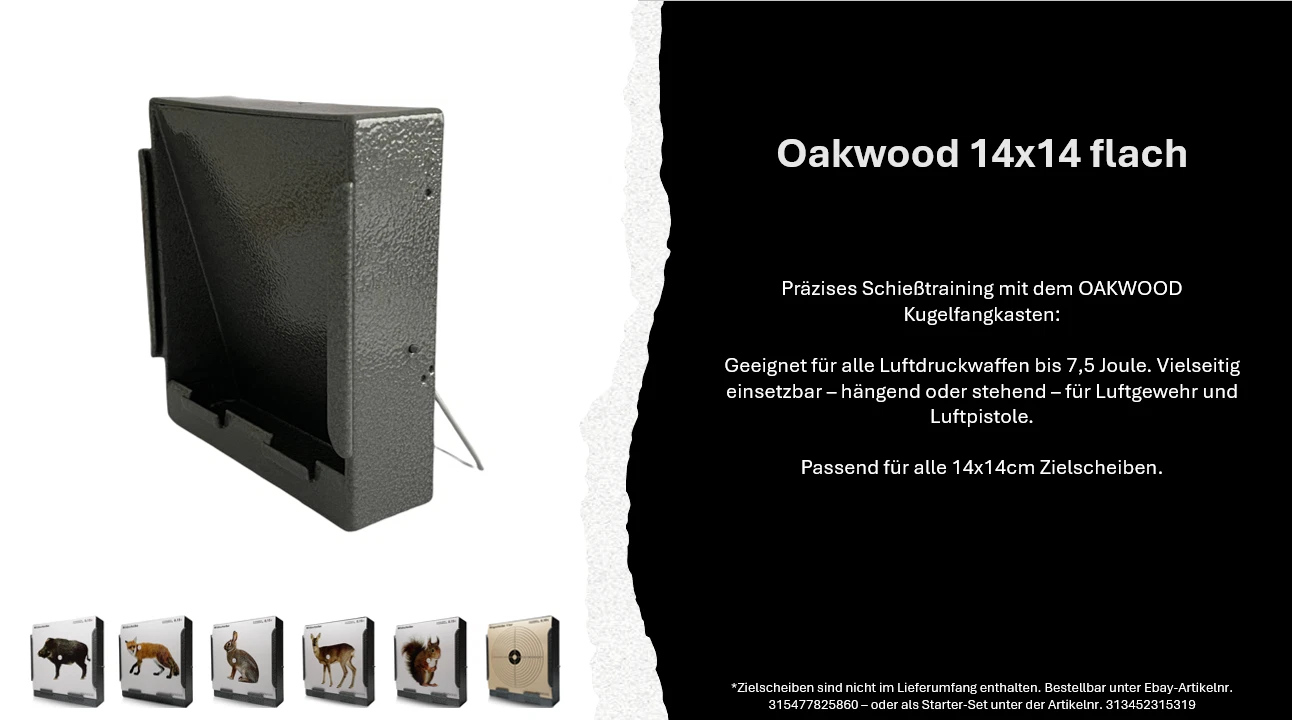 OAKWOOD Kugelfangkasten für Luftgewehr Luftpistole Softair | Größen 14x14 & 17x17 | Pendelkasten Flach, Trichter, 2in1, Verschiedene Motivziele | Auffangkasten