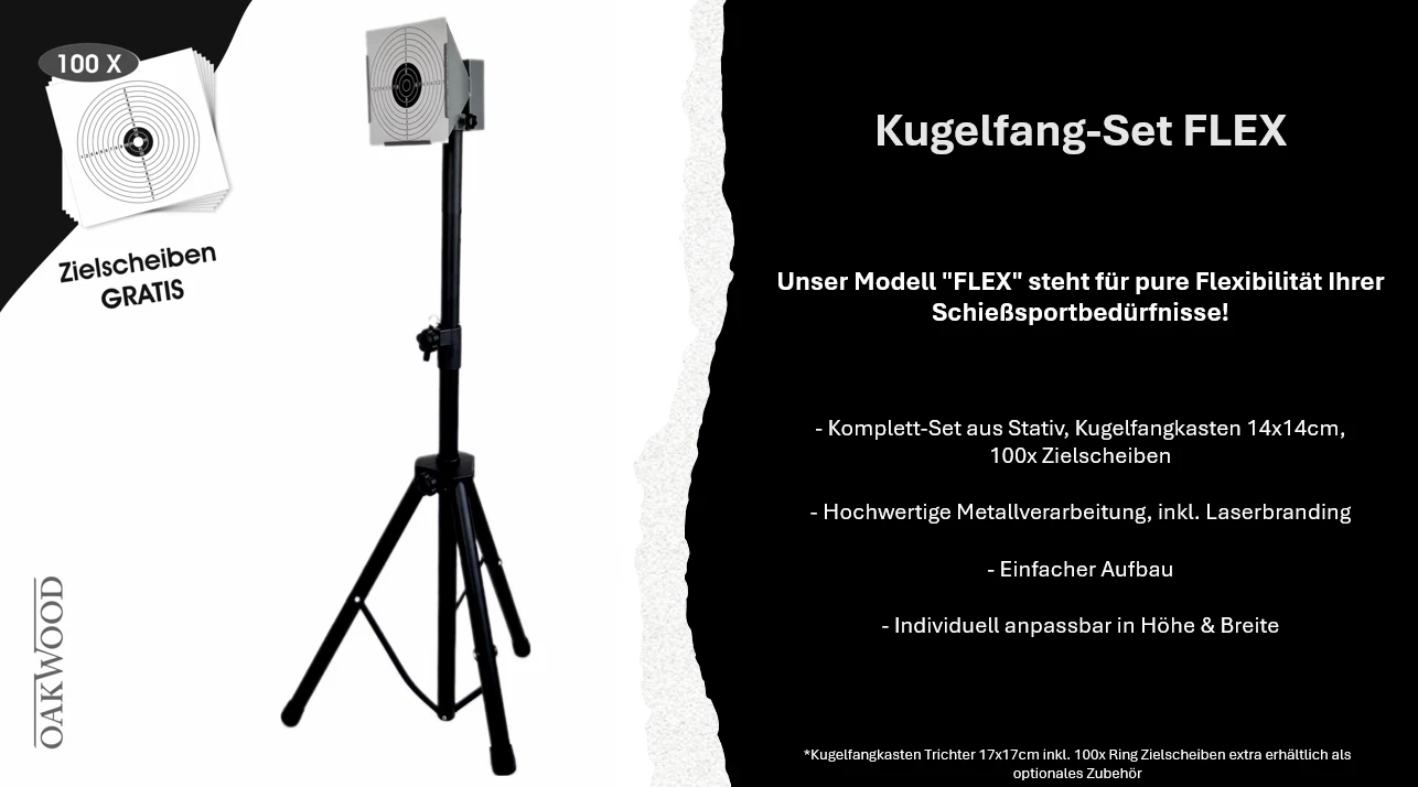 🎯 FLEX: Stativ aus hochwertigem Metall mit matt schwarzem Finish | Kugelfangkästen aus hochwertigem Metall mit grauer Hammerschlag-Lackierung | Einfacher Aufbau | Individuell anpassbar | 🛡️ geeignet für alle Luftdruck- und Softairwaffen bis 7,5 Joule | 📏 Abmaße: 110-175 x 50-140 cm