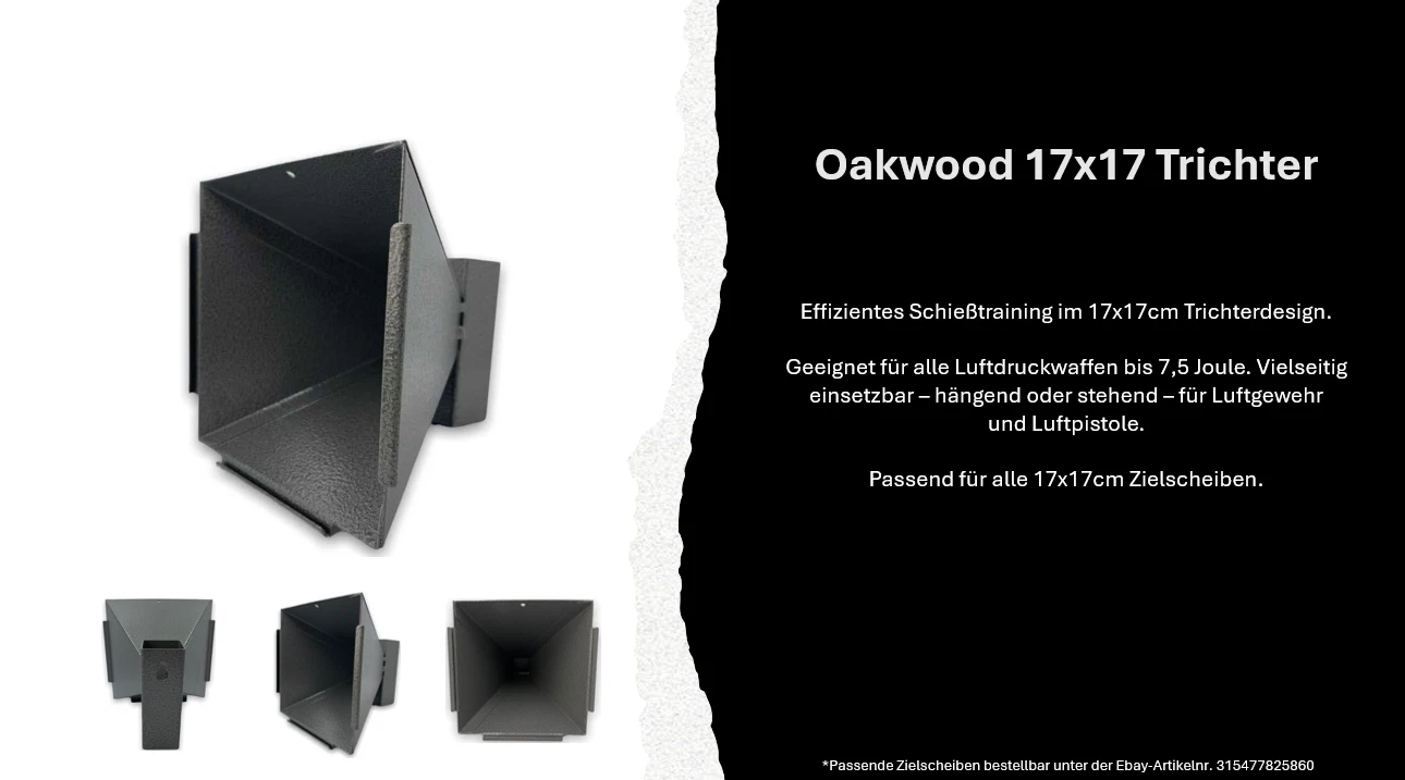 🎯 Trichter "BIG" 17x17cm: aus hochwertigem Metall mit grauer Hammerschlag-Lackierung | passend für alle 17x17cm Zielscheiben | hängend und stehend einsetzbar | 🛡️ geeignet für alle Luftdruck- und Softairwaffen bis 7,5 Joule | 📏 Abmaße: 17,5 x 17,5 x 14 cm