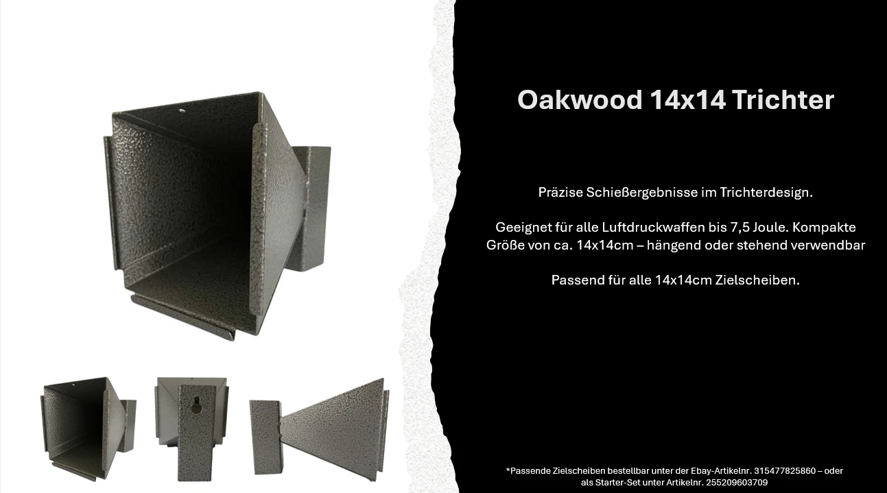 🎯 Trichter 14x14cm: aus hochwertigem Stahlblech mit grauer Hammerschlag-Lackierung | passend für alle 14x14cm Zielscheiben | hängend und stehend einsetzbar | 🛡️ geeignet für alle Luftdruck- und Softairwaffen bis 7,5 Joule | 📏 Abmaße: 14,5 x 15 x 17,5 cm