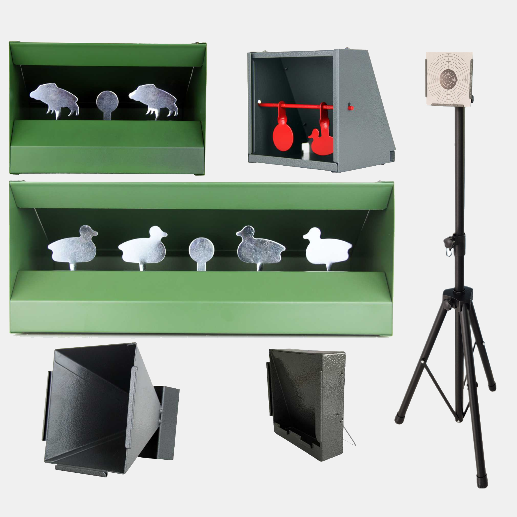 - Komplett-Set: Lieferumfang besteht aus 1x Stativ, 1x Trichter-Kugelfang (14x14cm) und 100x Ring-Zielscheiben – alles, was Sie für den sofortigen Einsatz benötigen